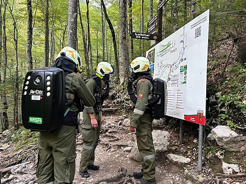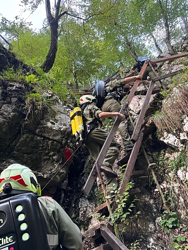 Tscheppaschlucht. Mit Sauerstoffgeräten, Pressluftatmern-Doppelcomposit