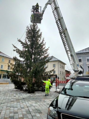 Mit Hilfe des TM32 wurde der Christbaum am Ferlacher Hauptplatz zum Strahlen gebracht.