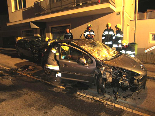 auf den Parkstreifen und rammte ein dort stehendes Fahrzeug. Beim